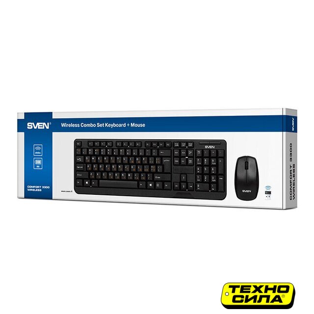 клавиатура + мышь для ПК, мышь беспроводная радио (сенсор оптический), клавиатура радио, цвет черный