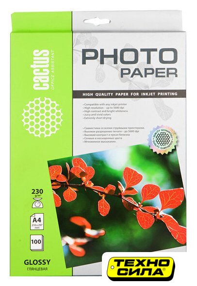 глянцевая фотобумага, плотность 230 г/кв.м., A3, струйная печать, 50 листов