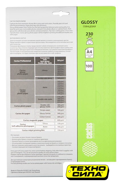 глянцевая фотобумага, плотность 220 г/кв.м., A4, двухсторонняя, струйная печать, 50 листов