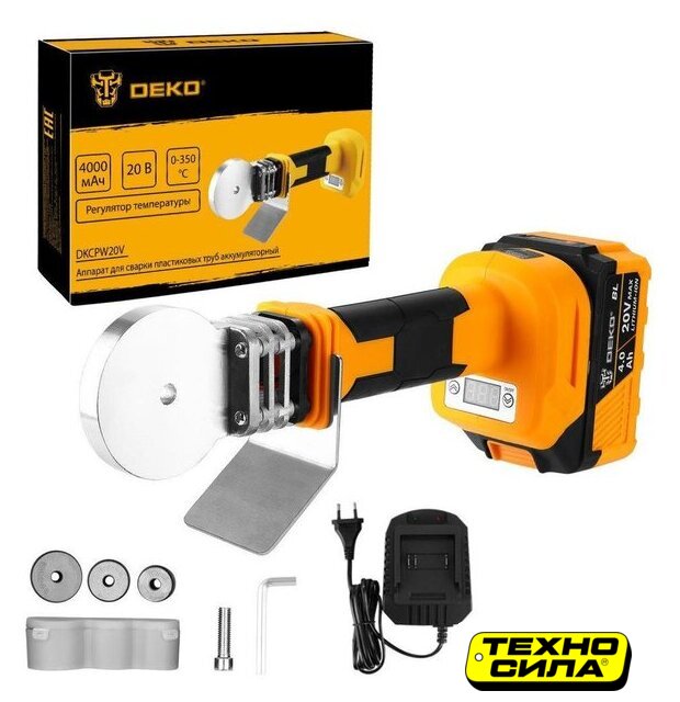 Комплектация | - Аппарат для сварки - 1 шт.- Насадки парные (20, 25, 32 мм) - 3 шт.- Аккумулятор 4,0 Ач - 4 шт.- Зарядное устройство - 1 шт.- Ключ шестигранный - 1 шт.- Руководство по эксплуатации- Коробка |