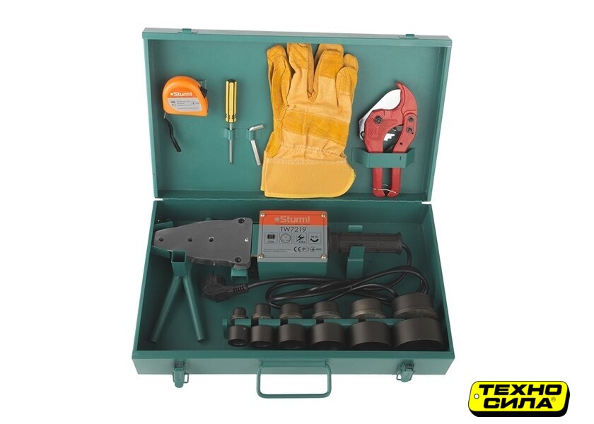 2000 Вт, мечевидный, 300 °C, термостат, с тефлоновым покрытием, насадки 20 мм/25 мм/32 мм/40 мм/50 мм/63 мм, труборез, кейс