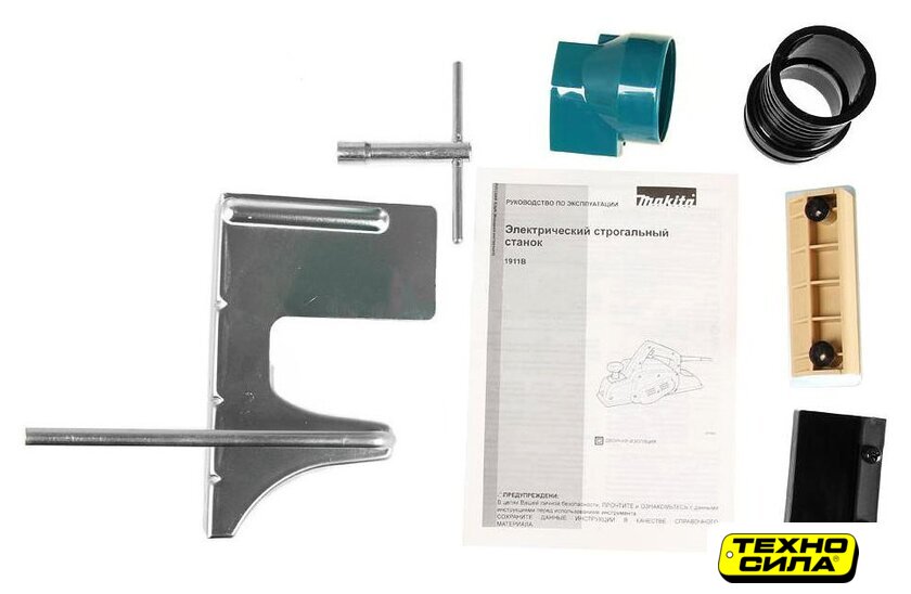 Комплект поставки | твердосплавный нож, держатель для дополнительной заточки ножа, параллельный упор, калибр для установки ножа, патрубок для пылесоса, торцовый ключ |