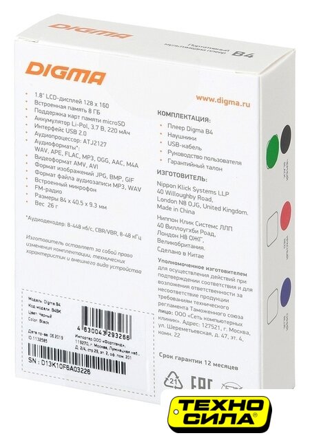 экран 1.8" TFT 128 x 160, поддержка карт памяти, радио, время работы 15 часов