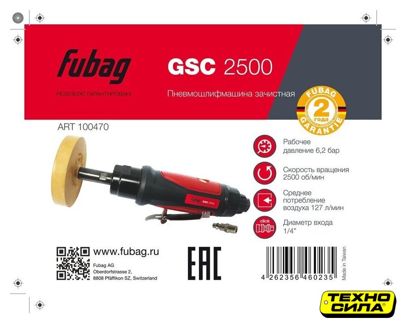 Комплект поставки | Зачистная пневмошлифмашина - 1 шт.Диск из резины диаметром 87 мм, толщиной 15 мм - 1 шт.ИнструкцияКоробка |