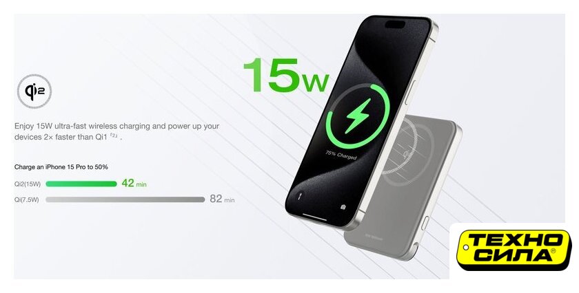 10000 мА·ч (38.5 Вт·ч), выходы: 1 x 5V/9V/12V/20V (3000 мА), быстрая зарядка, беспроводная зарядка, поддержка MagSafe, крепление на смартфон, подставка, площадка для умных часов