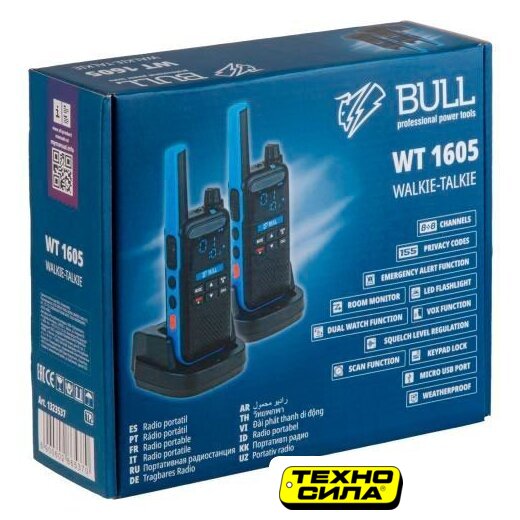 Дополнительные принадлежности | Радиостанция - 2 шт.;Батарея Li-ion (3,7 В / 1800 мАч) - 2 шт.;Подставка для зарядки - 2 шт.;Кабель USB: 2 шт.;Дополнительные крышки - 2 шт.;Зажимы для крепления на ремне: 2 шт.; |