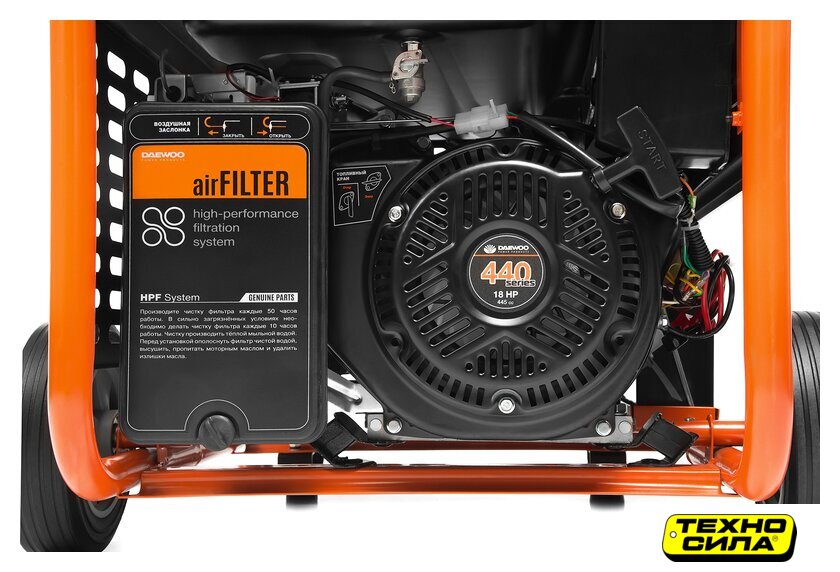 бензиновый, максимальная мощность: 8 кВт, номинальная мощность: 7.5 кВт, запуск: ручной/электростартер, время непрерывной работы: 6 ч, 64.8 кг