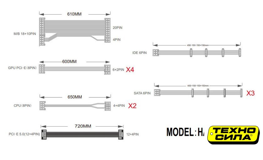 ATX 1250 Вт, активная PFC, золотой сертификат, вентилятор 1x135 мм, модульные кабели, 1x 12В 104.1А, 1x PCIe Gen5