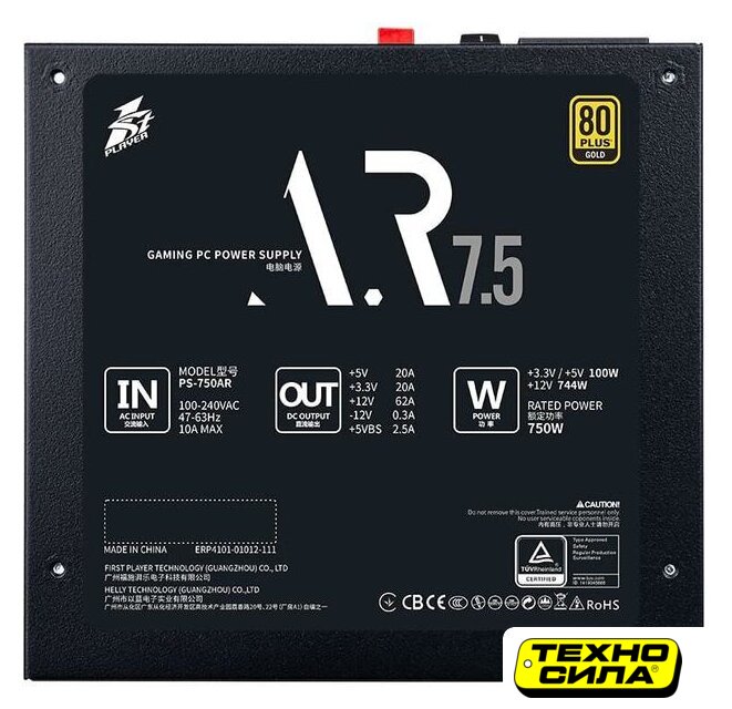 750 Вт, активная PFC, КПД 85%, бронзовый сертификат, вентилятор 1x120 мм, 12V 62.5 А