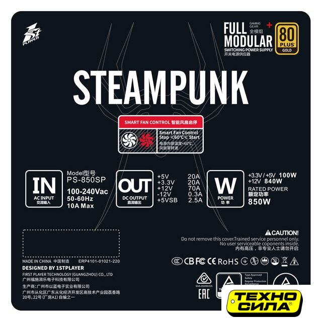 активная PFC, золотой сертификат, вентилятор 1x120 мм, модульные кабели, 12V 62.5 А