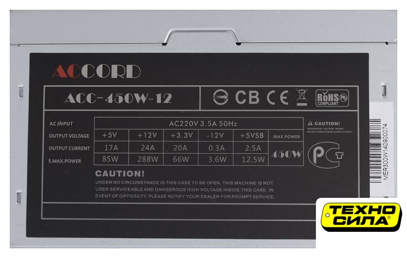 ATX 500 Вт, бронзовый сертификат, вентилятор 1x80 мм, 2x 12В 25А