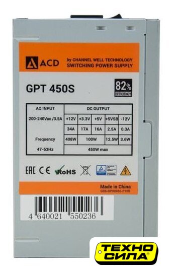 ATX 500 Вт, бронзовый сертификат, вентилятор 1x80 мм, 2x 12В 25А