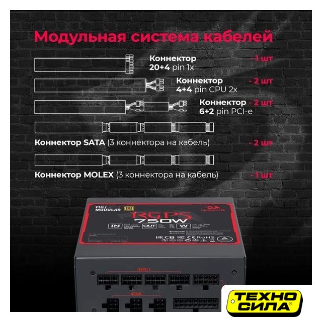750 Вт, активная PFC, вентилятор 1x140 мм, модульные кабели, 12V 62 А
