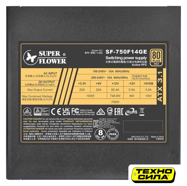 SFX 750 Вт, активная PFC, платиновый сертификат, вентилятор 1x80 мм, модульные кабели, 1x 12В 62А