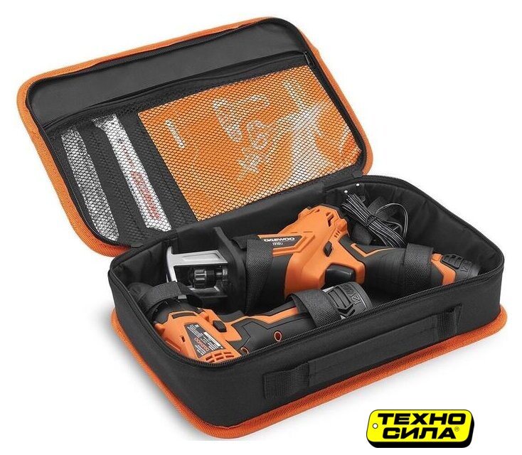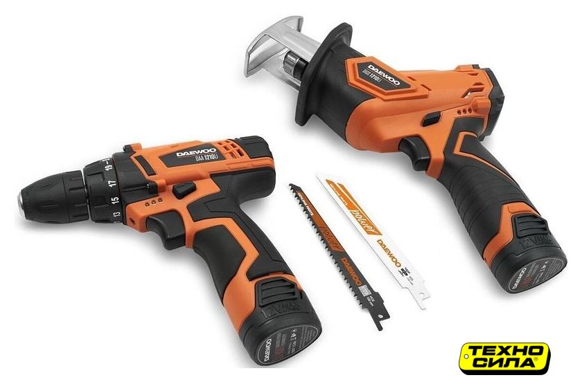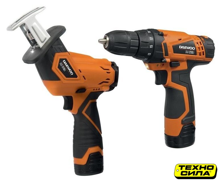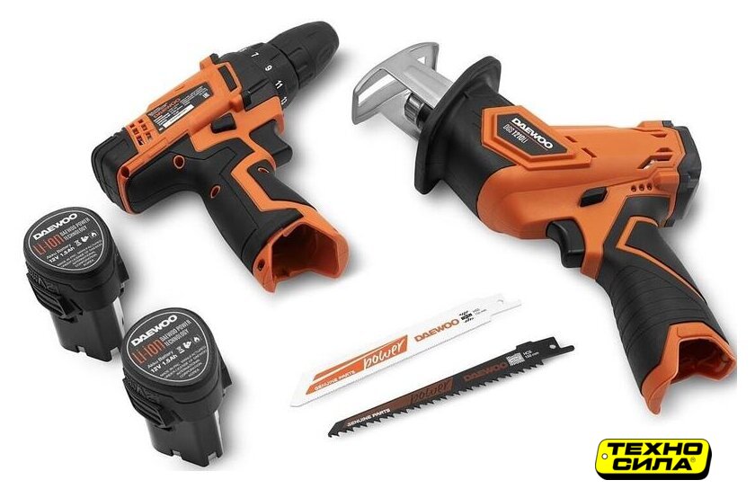 Комплектация | - Дрель-шуруповерт аккумуляторная Daewoo DAA 1210Li;- Сабельная пила аккумуляторная Daewoo DGS 1210Li;- Аккумулятор 1,5 А/ч - 2 шт;- Зарядное устройство;- Инструкция;- Сумка;- Коробка; |