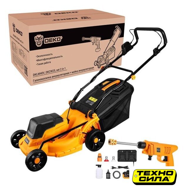 Состав набора | газонокосилка, мойка высокого давления |