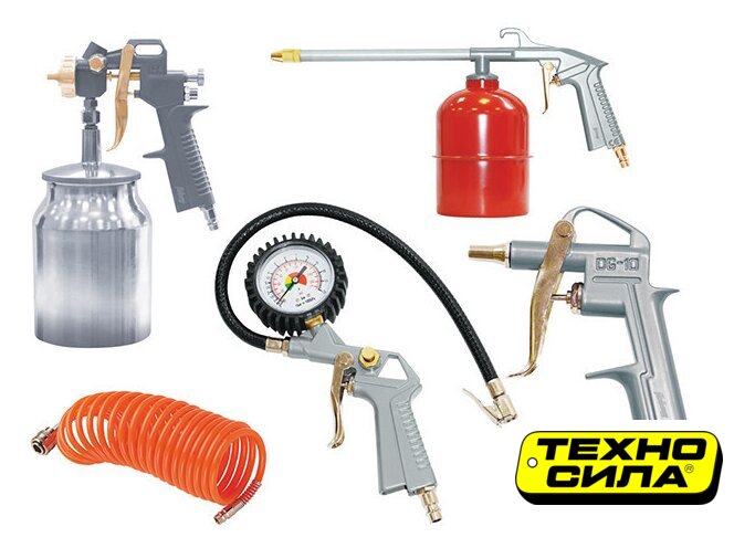 Комплектация | Краскораспылитель с нижним бачком и соплом 1,5 мм - 1 шт.Дополнительное сопло 2,0 мм - 1 шт.Пневмопистолет для вязких жидкостей - 1 шт.Пневмопистолет для продувки - 1 шт.Пневмопистолет для накачки шин с манометром - шт.Спиральный шланг - 1 шт.Упаковка |