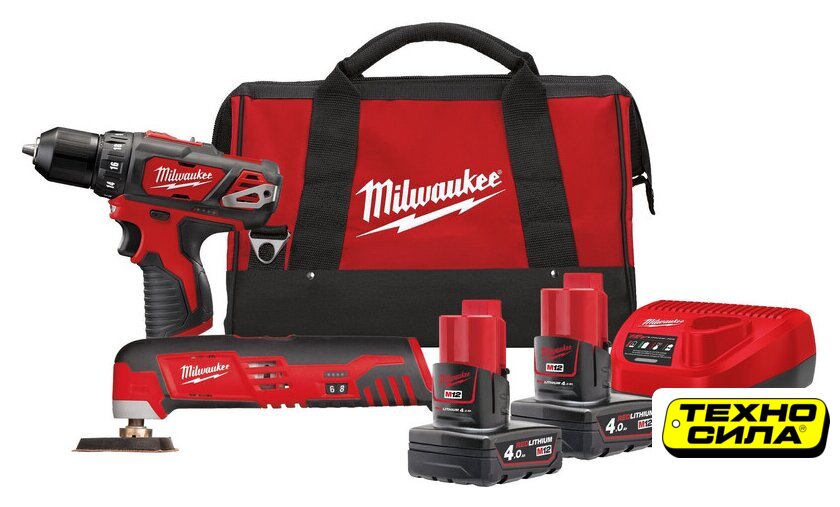 Комплектация | - Аккумуляторная безударная дрель-шуруповерт Milwaukee M12 BDD-0 (Арт. 4933441930) - 1 шт- Аккумуляторный многофункциональный инструмент Milwaukee C12 MT-0 (Арт. 4933427180) - 1 шт- Аккумулятор Milwaukee M12 B4 4.0 Ач (Арт. 4932430065) - 2 шт- Зарядное устройство Milwaukee C12 C (Арт. 4932352000) - 1 шт- Инструкция по эксплуатации- Сумка для инструмента |