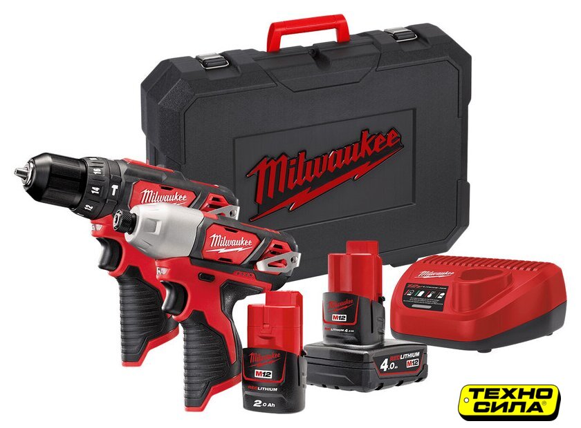 Комплектация | - дрель-шуруповерт Milwaukee M12 BPD-0 - винтоверт Milwaukee M12 BID-0- 1 акб 2 Ач- 1 акб 4 Ач- кейс |