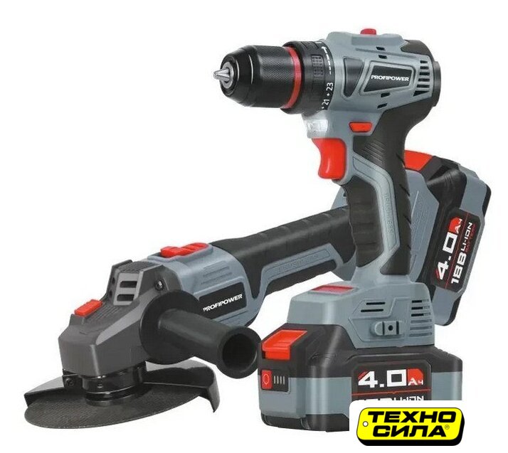 Состав набора | дрель-шуруповерт, угловая шлифовальная машина |