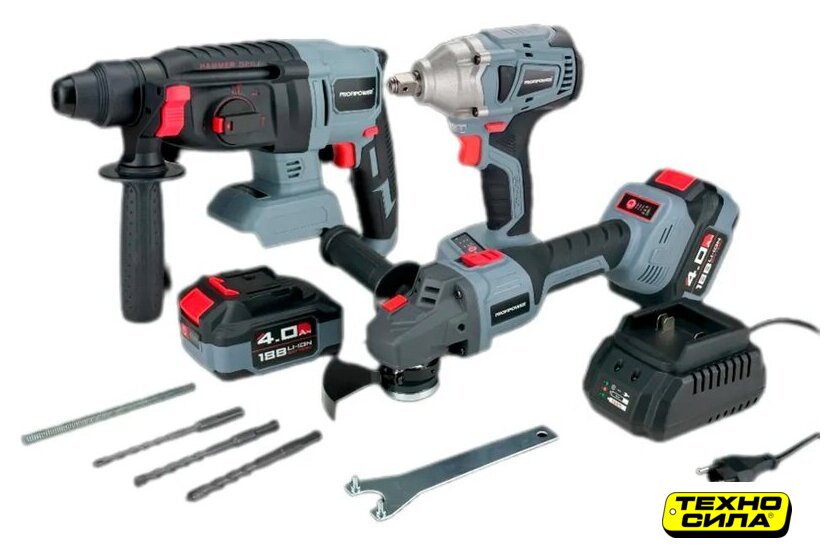 Состав набора | гайковерт, перфоратор, угловая шлифовальная машина |
