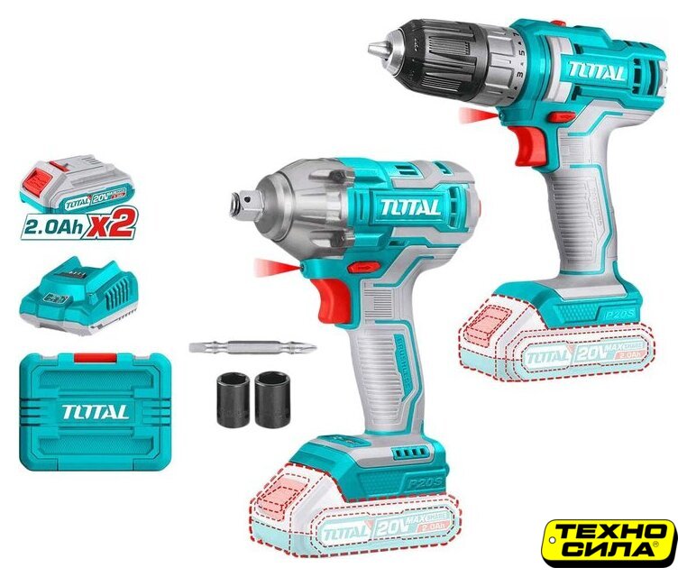 Комплектация | - Дрель-шуруповерт TDLI200528 - 1 шт.- Гайковерт TIWLI2038 - 1 шт.- Аккумулятор TFBLI20011 2,0 Ач - 2 шт.- Зарядное устройство TFCLI2001 - 1 шт.- Двухсторонняя бита 65 мм Cr-V - 1 шт.- Торцевые головки 19 и 21 мм - 2 шт.- Кейс |