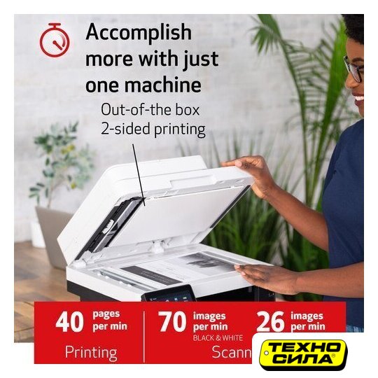МФУ, лазерный, черно-белый, формат A4 (210x297 мм), скорость ч/б печати 40 стр/мин, разрешение 600 dpi, факс, LAN, Wi-Fi