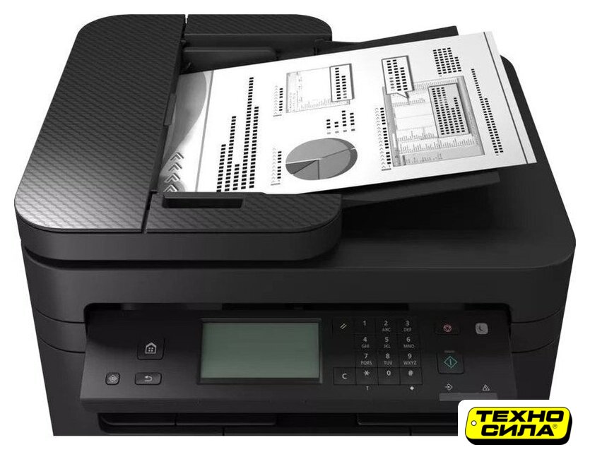 МФУ, лазерный, черно-белый, формат A4 (210x297 мм), скорость ч/б печати 28 стр/мин, разрешение 600 dpi, LAN, Wi-Fi