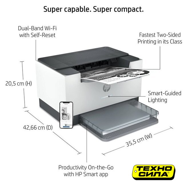 принтер, лазерный, черно-белый, формат A4 (210x297 мм), скорость ч/б печати 28 стр/мин, разрешение 1200 dpi, Wi-Fi