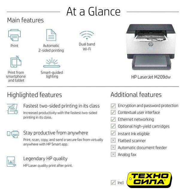 принтер, лазерный, черно-белый, формат A4 (210x297 мм), скорость ч/б печати 30 стр/мин, разрешение 1200 dpi, LAN, Wi-Fi