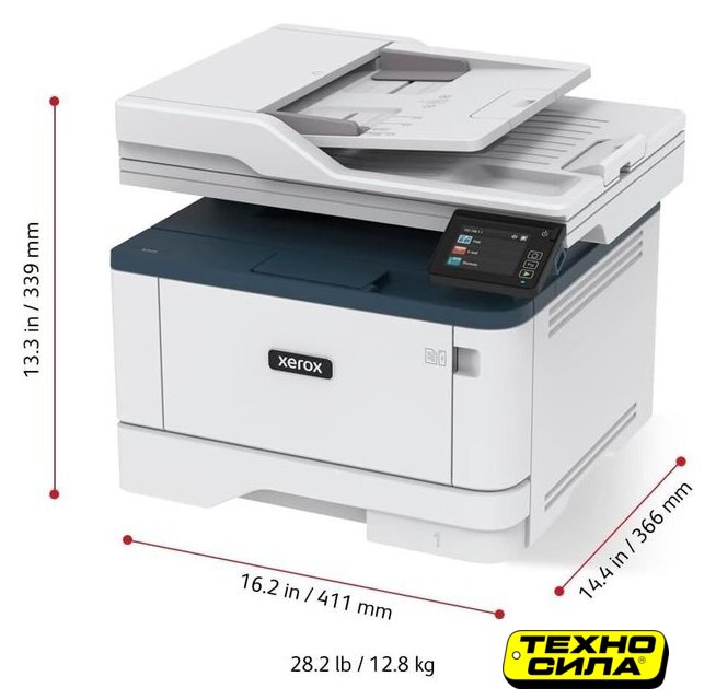 МФУ, лазерный, ширина бумаги до 356 мм, черно-белый, формат A4 (210x297 мм), скорость ч/б печати 29 стр/мин, разрешение 600 dpi
