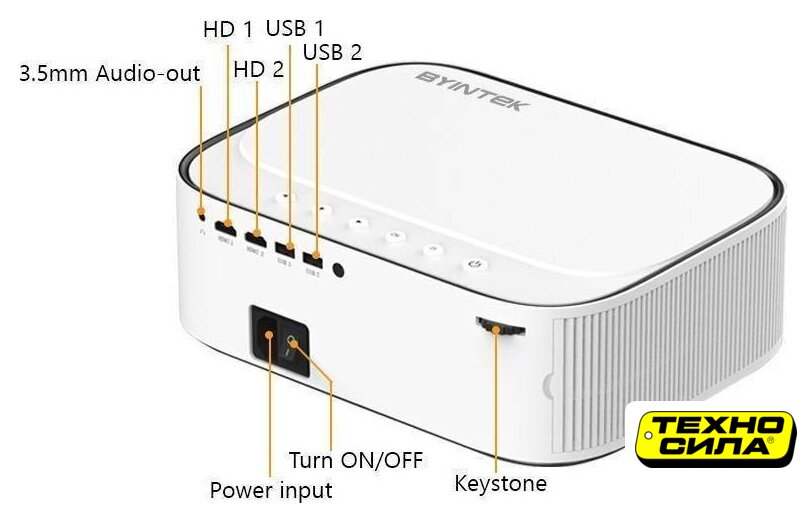 матрица LCD, FullHD (1920x1080), светодиодный (LED), яркость 800 ANSI лм, контраст 1500:1, расстояние 1.5-7 м, экран 40-250", LAN, Wi-Fi, Chromecast Built-in