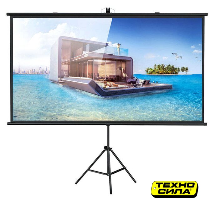 180x180 см, 100" 1:1, мобильный, рулонный ручной, на штативе, покрытие матовое белое 1:1