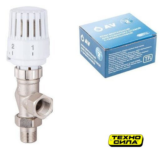 латунь, диаметр входа 1/2", диаметр выхода 1/2", жидкостная термоголовка, 7.55x5.1 см, белый