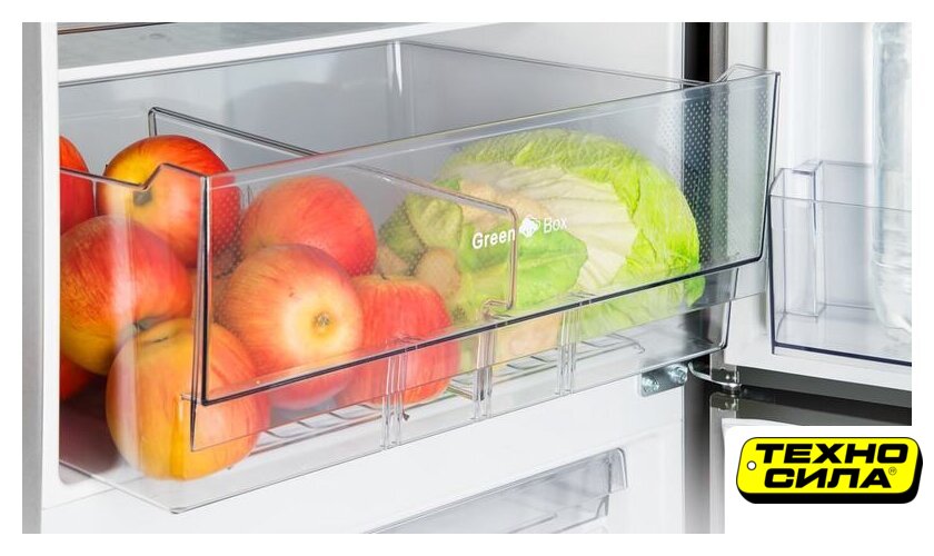 отдельностоящий, без No Frost, электронное управление, класс A+, полезный объём: 301 л (182 + 119 л), перенавешиваемые двери, лоток для яиц, 59.5x62.9x176.8 см, серебристый