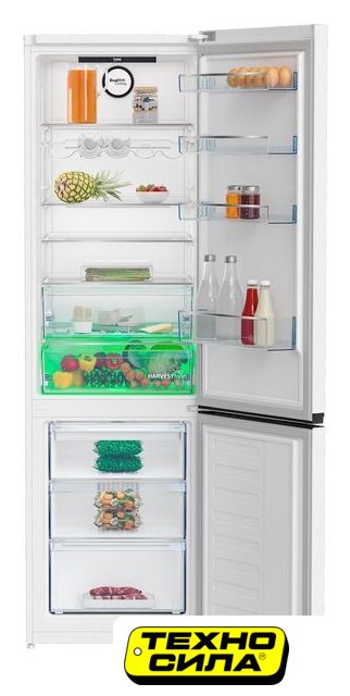 отдельностоящий, полный No Frost, электронное управление, класс A+, полезный объём: 320 л (220 + 100 л), перенавешиваемые двери, лоток для яиц, 59.5x65x186 см, белый