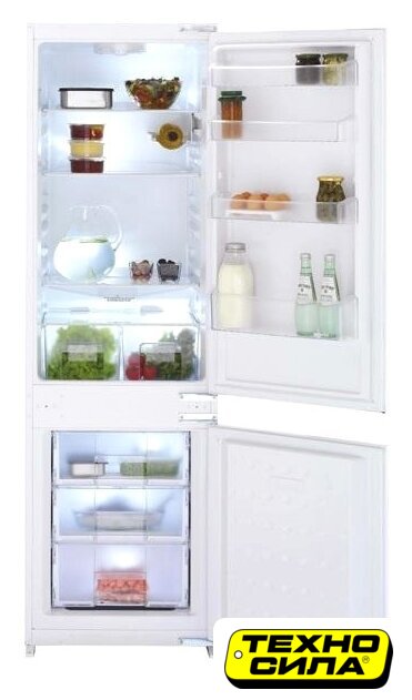 встраиваемый, без No Frost, электронное управление, класс A+, полезный объём: 245 л (175 + 70 л), зона свежести, перенавешиваемые двери, складная полка, 54x55.7x178.5 см, белый