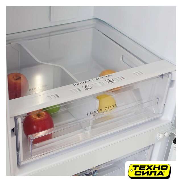 отдельностоящий, полный No Frost, электронное управление, класс A+, полезный объём: 329 л (235 + 94 л), зона свежести, перенавешиваемые двери, автодоводчик дверей, складная полка, полка для вина, лоток для яиц, 59.5x66x196.8 см, белый