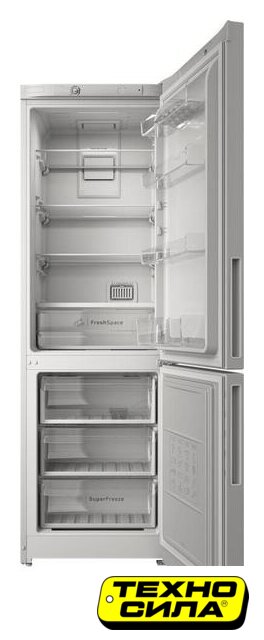 отдельностоящий, без No Frost, электронное управление, класс A+, полезный объём: 301 л (182 + 119 л), перенавешиваемые двери, полка для вина, лоток для яиц, 59.5x62.9x176.8 см, белый