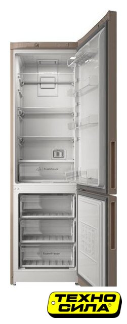 отдельностоящий, No Frost (морозильная камера), механическое управление, класс A+, полезный объём: 312 л (237 + 75 л), перенавешиваемые двери, лоток для яиц, 57.4x62.5x203.4 см, бежевый