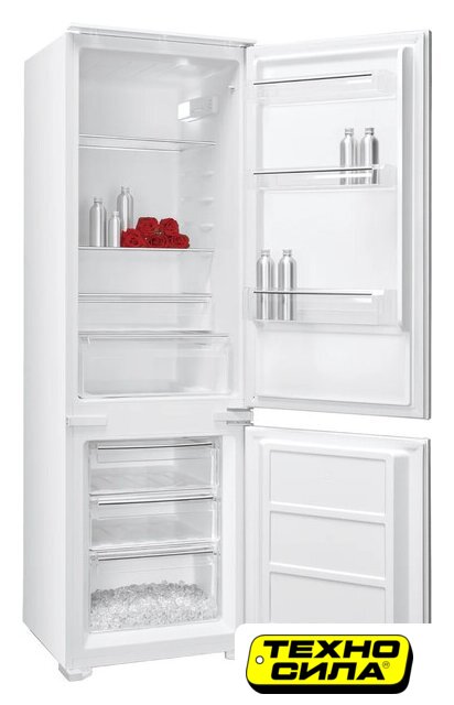 встраиваемый, без No Frost, электронное управление, класс A+, полезный объём: 245 л (175 + 70 л), зона свежести, перенавешиваемые двери, складная полка, 54x55.7x178.5 см, белый