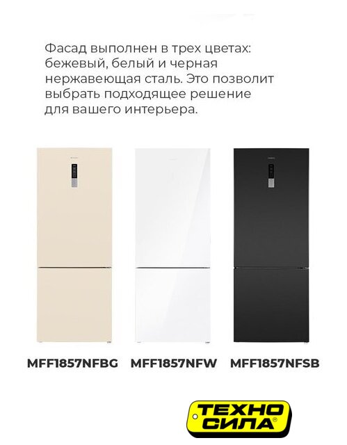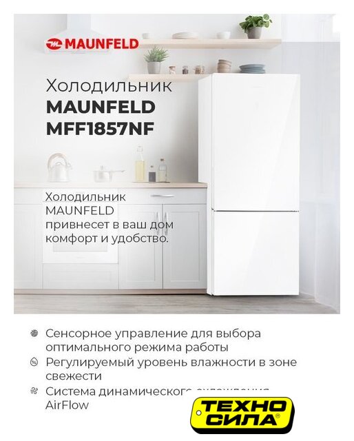 отдельностоящий, No Frost (морозильная камера), электронное управление, класс A++, полезный объём: 319 л (187 + 132 л), инверторный компрессор, перенавешиваемые двери, подставка-лоток для бутылок, лоток для яиц, 59.7x67.5x185.5 см, белый