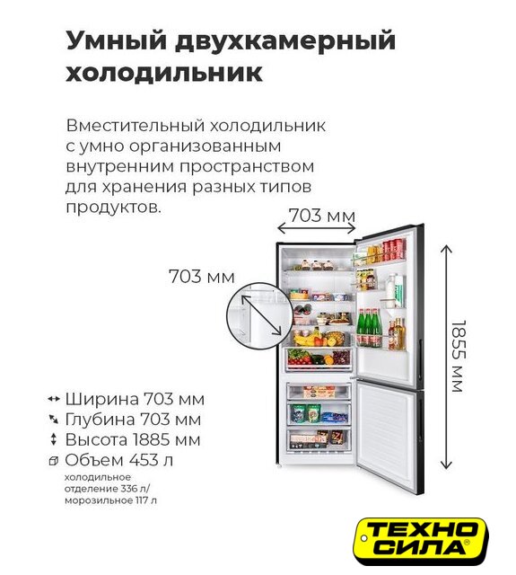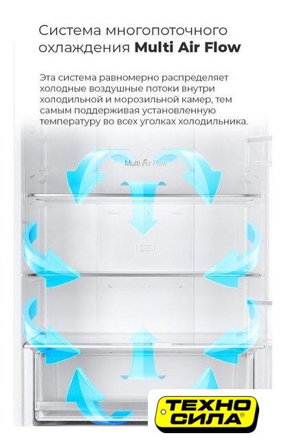 отдельностоящий, полный No Frost, электронное управление, класс A+, полезный объём: 417 л (288 + 129 л), инверторный компрессор, лоток для яиц, отделка: стекло, 83.6x63.6x183 см, синий