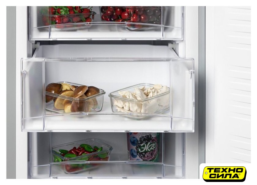 отдельностоящий, полный No Frost, электронное управление, класс A+, полезный объём: 319 л (243 + 76 л), перенавешиваемые двери, лоток для яиц, 60x60x201 см, белый