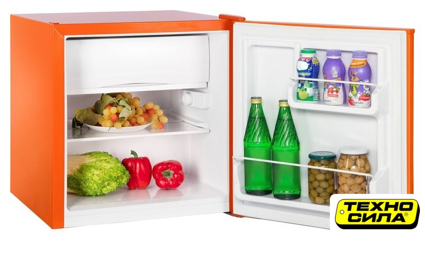 отдельностоящий, без No Frost, механическое управление, класс A+, полезный объём: 59 л, перенавешиваемые двери, 50x48x52.5 см, оранжевый