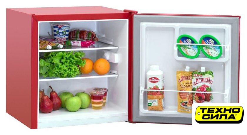 отдельностоящий, без No Frost, механическое управление, класс A+, полезный объём: 55 л, перенавешиваемые двери, 50x48x52.5 см, красный