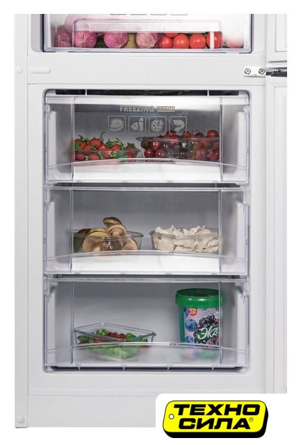 отдельностоящий, полный No Frost, механическое управление, класс A, полезный объём: 298 л (223 + 75 л), перенавешиваемые двери, лоток для яиц, 60x64x185 см, белый