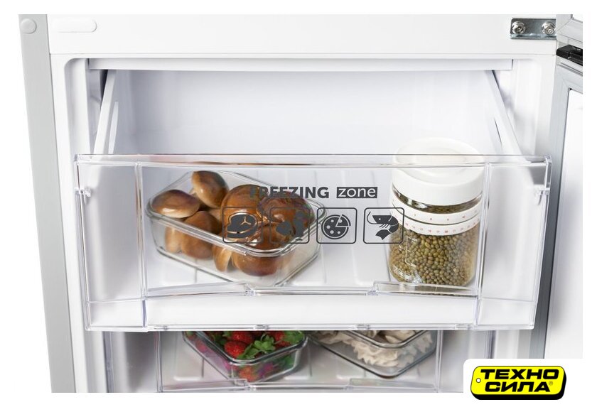 отдельностоящий, без No Frost, электронное управление, класс A+, полезный объём: 341 л (182 + 159 л), лоток для яиц, подставка-лоток для бутылок, 59.5x62.9x196.8 см, серебристый