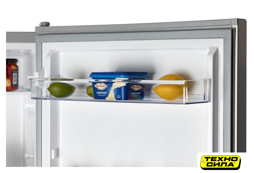 отдельностоящий, без No Frost, электронное управление, класс A+, полезный объём: 347 л (228 + 119 л), зона свежести, перенавешиваемые двери, выдвижной/подвесной контейнер, подставка-лоток для бутылок, лоток для яиц, ершик для чистки, 59.5x62.9x196.8 см, черный металлик