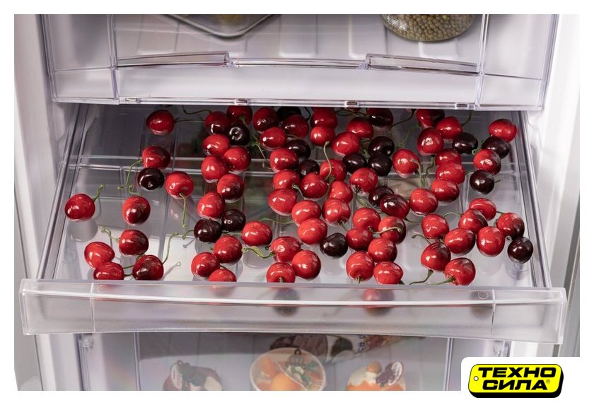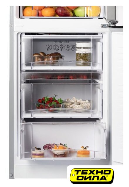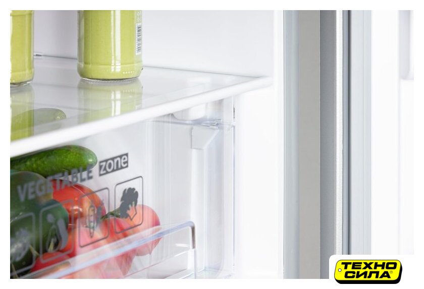отдельностоящий, без No Frost, электронное управление, класс A+, полезный объём: 370 л (251 + 119 л), зона свежести, перенавешиваемые двери, полка для вина, лоток для яиц, 59.5x62.9x206.8 см, белый